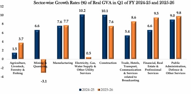 c) Overall secondary sector (including utilities): 7.0%, down from 8.6% in Q1 FY25.